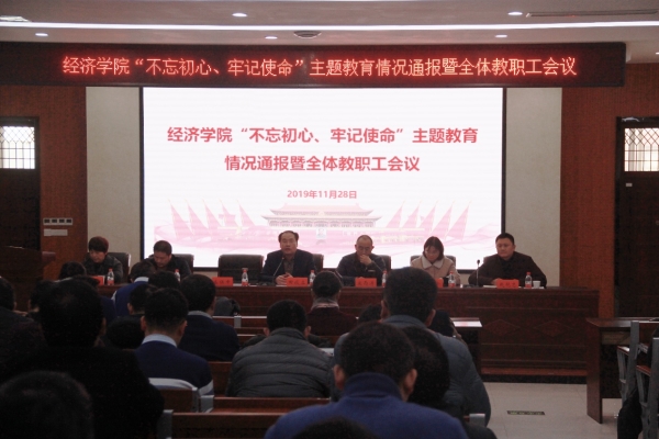 2019年11月28日下午,必赢242net在学院二楼报告厅召开全体教职工会议,通报学院“不忘初心、牢记使命”主题教育开展情况、存在问题及整改落实安排,并抽选部分党员进行了理论学习效果测评。活动由公司党委书记田歧立主持。