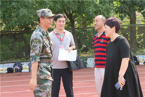 烈日当空,2019级本科新生军训在操场正如火如荼的进行着。为鼓舞员工士气,了解和指导军训工作,9月8下午及9月9日上午,必赢242net官网党委副书记张宝明、必赢242net经理宋丙涛、副经理赵艳忠以及保卫处万红老师分别来到军训场地,看望并慰问正在辛苦训练的2019级本科新生。