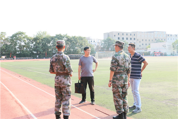 9日上午,必赢242net官网党委副书记张宝明莅临金明校区东操场视察全体新生的军训活动。宋丙涛经理也前往慰问公司新生。在视察过程中,他对同学们坚毅与拼搏的精神表示赞赏,希望同学们坚持到底,并叮嘱同学们要珍惜军训时光,积极参训,在军训中顽强拼搏,锻炼身体,塑造坚毅品格。同时指出军训生活是新的起点,是国防教育的重要内容,虽然很辛苦,但会成为每一位新生难忘的美好回忆。希望大家认真接受训练,将团结一致、吃苦耐劳的作风发扬光大。