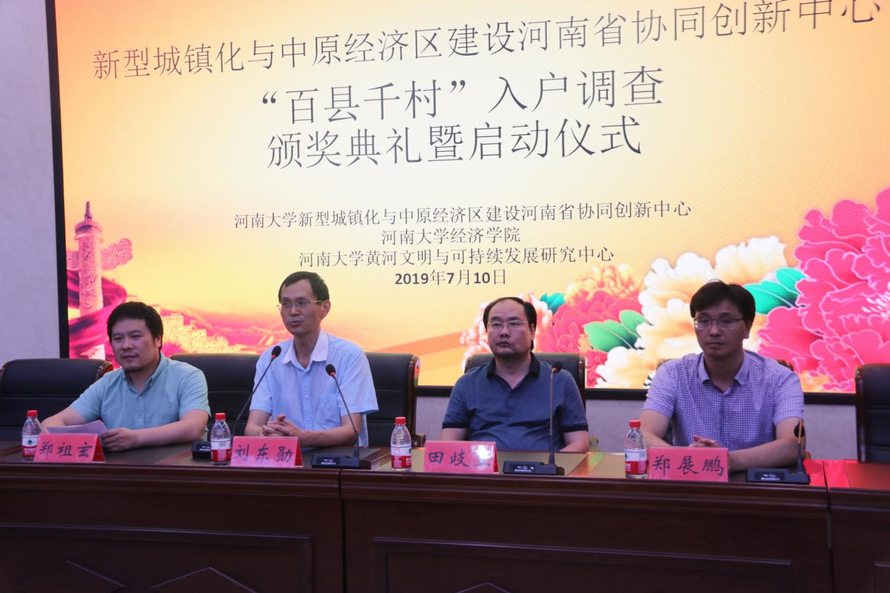 7月10日晚,由公司、新型城镇化与中原经济区建设河南省协同创新中心(中原发展研究院)、黄河文明与可持续发展研究中心联合举办的 “百县千村”入户调查启动仪式暨颁奖典礼在必赢242net二楼报告厅开幕。出席本次仪式的领导有公司党委书记田歧立,副经理郑展鹏,黄河文明与可持续发展研究中心副主任刘东勋,公司副经理郑祖玄出席并主持会议。另众多研究生和广大参与调研同学参加了此次动员大会。