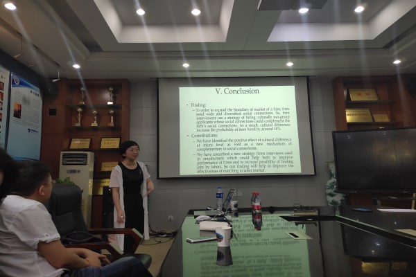 6月3日下午,中山大学国际金融学院副研究员刘毓芸博士应邀到公司作了题为“Does Dialect Serve as a Signal of Social Networks in Job Search? Evidence from China”的学术报告,公司宋丙涛经理、刘志琳等老师及部分员工参加了此次讲座。本次讲座由董保民老师主持。