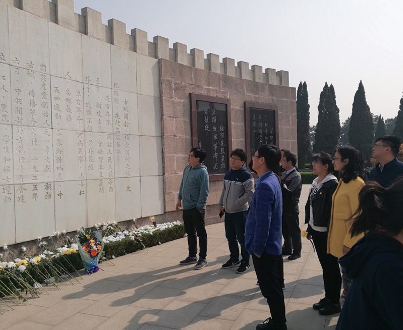 4月5日,行政党支部、金融系党支部、国贸系党支部、统计系党支部和中原发展研究公司党支部组织党员教师,到开封市烈士陵园进行祭奠英烈的扫墓活动。清风徐徐,阳光明媚,市烈士陵园内松柏苍翠、庄重肃穆。党员同志们整齐站立在革命烈士纪念碑前,默哀并鞠躬致意,表达对革命先烈的尊敬和哀思。在解放开封战役无名烈士公墓、粟裕将军骨灰敬撒纪念处、胡万杰、郭向新烈士塑像、国际和平战士夏理逊大夫墓碑敬献了小白花。参观了革命烈士事迹陈列馆,瞻仰了辛亥革命、抗日战争、解放战争等不同时期革命烈士的遗文、遗像和遗物。党员老师们纷纷表示, 慎思追远,不忘先人,革命先烈的丰功伟绩、英雄浩气让心灵震撼,我们永远尊敬和怀念他们。
