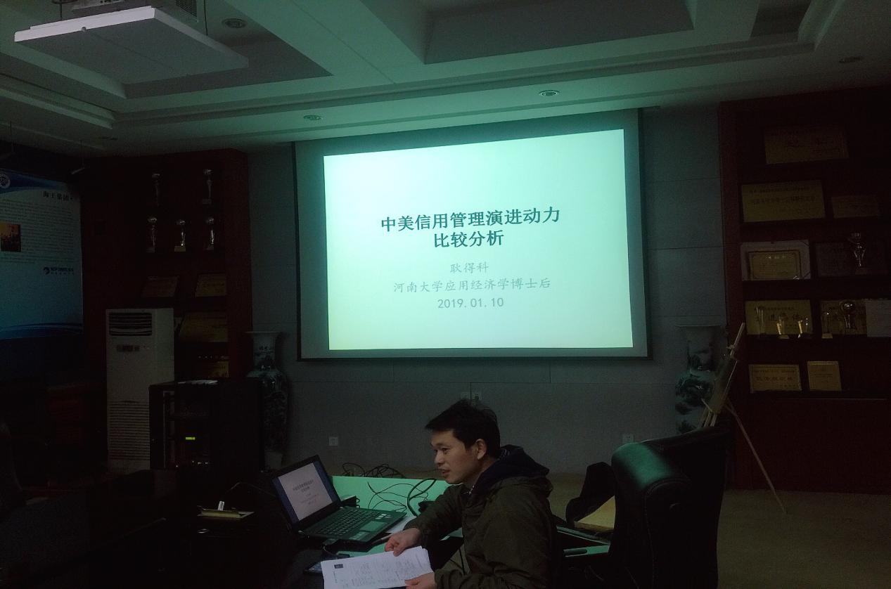此次答辩严格按照公司博士后出站报告答辩程序进行。耿得科从研究背景、文献综述、信用管理概述、信用消费发展、信用法律完善、信用中介建设、信息技术创新、余论八个方面,对自己的博士后报告——《中美信用管理演进动力比较分析》进行了详细的汇报。