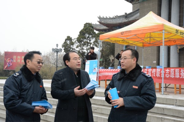 12月27日上午,必赢242net财政系党支部结合学科特点,联合国家税务总局开封市税务局机关第三党支部,在必赢242net官网明伦校区大礼堂广场举办特色党日活动。公司党委书记田歧立,开封市税务局党组成员、副局长李志民,学院副经理赵艳忠、副处级组织员万红,财政系党支部书记陈家涛和财政系全体教师参加了本次党日活动。