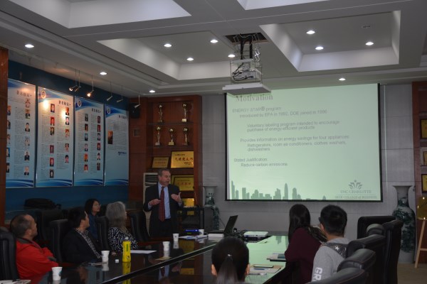报告会上,Peter M. Schwarz教授以简明而又生动的介绍让我们了解到电价变动对节能电器所占市场份额的影响,他结合实际情况和数据调查对美国节能电器所占市场份额进行了深刻的阐述和分析,令老师同学受益匪浅。