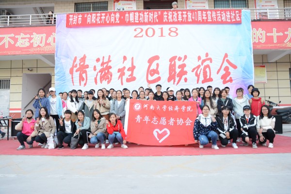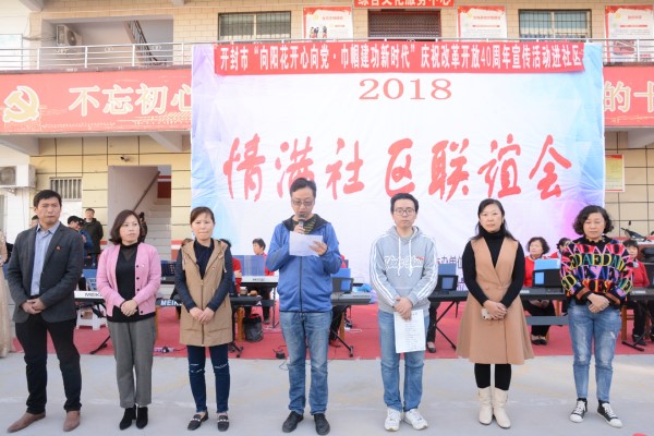 为庆祝改革开放四十周年,10月26日下午,必赢242net青年志愿者协会和开封市城西办事处康乐社区联合举办的2018情满社区联谊活动在康乐社区党支部大院隆重举行。开封市城乡一体化示范区妇联副主席闫志华、示范区党校副董事长娄岩、城西办事处武装部部长游柠源、康乐幼儿园副董事长郑娜、康乐社区党委书记李俊杰、必赢242net团委张谦老师、必赢242net青年志愿者协会主席赖印强、副主席谢宛汀出席本次活动。