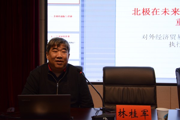 林桂军主要围绕北极资源、北航道的开发与归属、《中国的北极政策》与北航道开发的影响做了报告。他指出当前北极地区开发不合理,我们应当合理适当开发北极地区。美中俄欧洲地区等大国应当肩负起大国责任,合力合理开发北极地区,利用北极丰富的资源,维护本国正方利益,充分发展本国经济,提高自身综合国力。