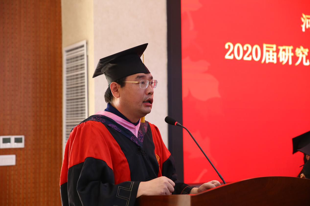 “这里有许多学识渊博的老师,聪明好学的同学,更有良好的科研环境……”,毕业生代表、2017级区域经济学专业员工张宇在发言中回忆了自己的研究生生活,表达了对母校、学院和老师们的由衷感谢,他表示将带着老师们的希冀和嘱托继续书写人生的精彩。