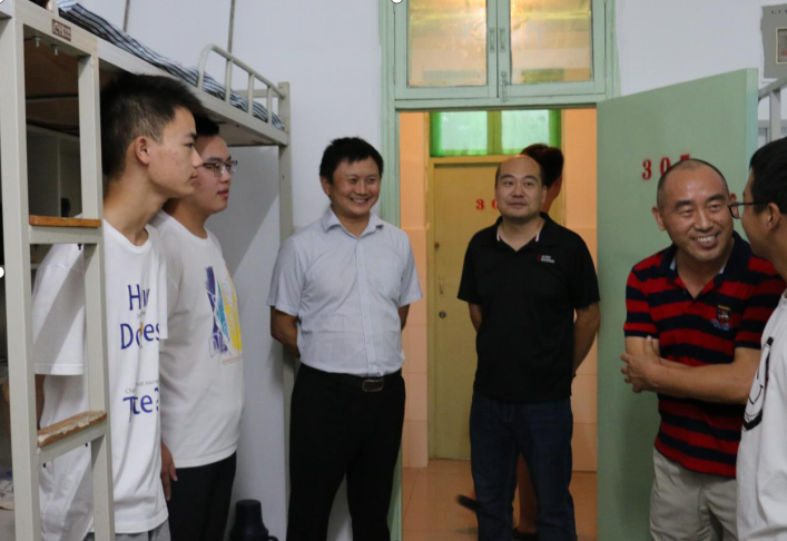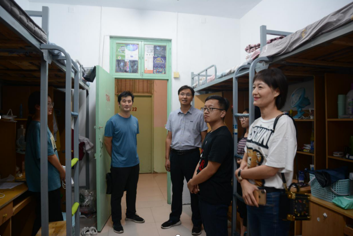 经理宋丙涛、副经理赵艳忠、新生辅导员袁航和张明萱带队走访了2020级男生所在的华源员工公寓。宋经理幽默风趣、温和亲切对同学们的关怀之情溢于言表。他仔细询问大家来自哪里、入学报到是否顺利、是否适应学校环境提醒大家提高自我保护意识,叮嘱同学们注意人身财产安全,放好贵重物品,出门佩戴好口罩。他鼓励同学们尽快适应新环境,建立和谐友好的人际关系,营造良好的学习氛围和生活环境,做好人生规划,珍惜美好的大学时光。