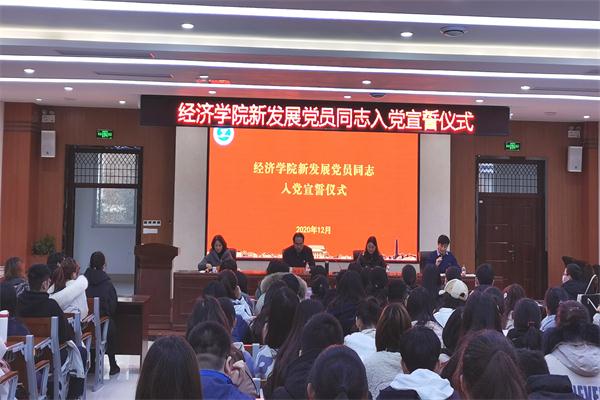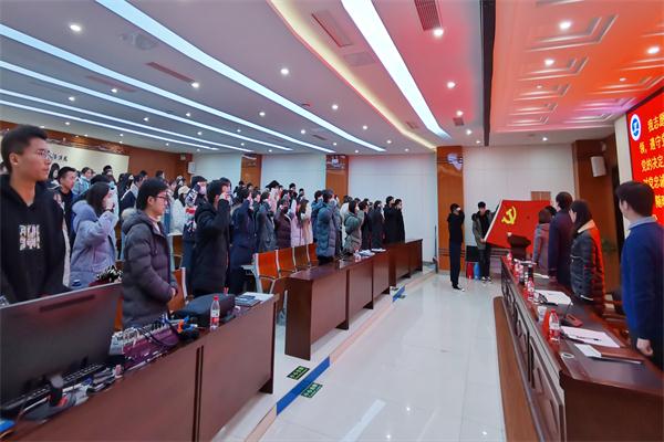 12月31日下午,必赢242net新入党党员入党宣誓仪式暨考风考纪教育会在学院二楼阶梯报告厅举行。公司党委书记田歧立、党委副书记王玉珍、副处级组织员万红、各员工党支部书记、2020年下半年新入党党员同志、部分入党积极分子代表参加了活动。活动由公司党委办公室主任郭淼主持。