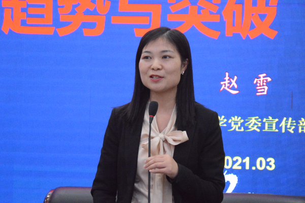 赵雪老师以“新媒体时代新闻写作的趋势与突破”为主题,围绕新闻写作、新媒体时代、写作趋势与突破三个话题,为大家分享了自己多年从事新闻工作的经验心得。她从新闻稿件的规范写作入手,提出“真”、“新”、“快”、“短”四个要求。她说,无论哪种类型的新闻,都必须要以真实性为第一原则;新闻贵在新,写新闻就像“抓活鱼”,必须讲求时效性;新闻是易碎品,只有二十四小时的生命,务求最快速度;随着人们生活的节奏的加快,新闻阅读习惯也随之加速,因此,新闻工作人员须将新闻事实以最简短、最直接的方式呈现出来。赵雪指出,在新媒体时代,员工通讯员一定要牢记服务师生的宗旨,把握好特殊时间节点,结合学校特色,讲好身边故事,做接地气、有情怀的新媒体人。在讲座的第三部分,赵雪重点阐释了新闻写作的趋势与突破。她指出,传统媒体与新兴媒体的交融使得传播渠道不断拓宽,要坚持客观性、时效性、创新性理念;充分利用采访到的文字、图片、声音、视频等素材,进行内容一体化、形式多样化的新闻写作。在讲座的最后,赵雪鼓励与会同学像“网红”一样去宣传,像“小粉红”一样去爱,用深度智慧和热血青春书写家国情怀。