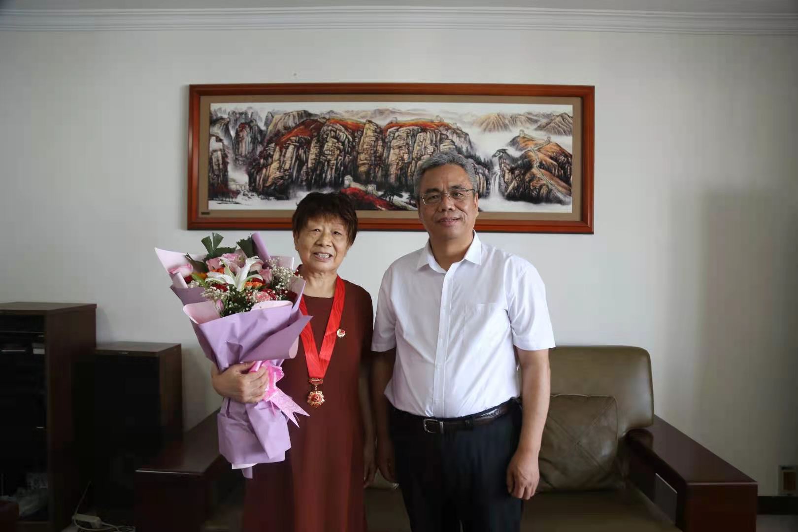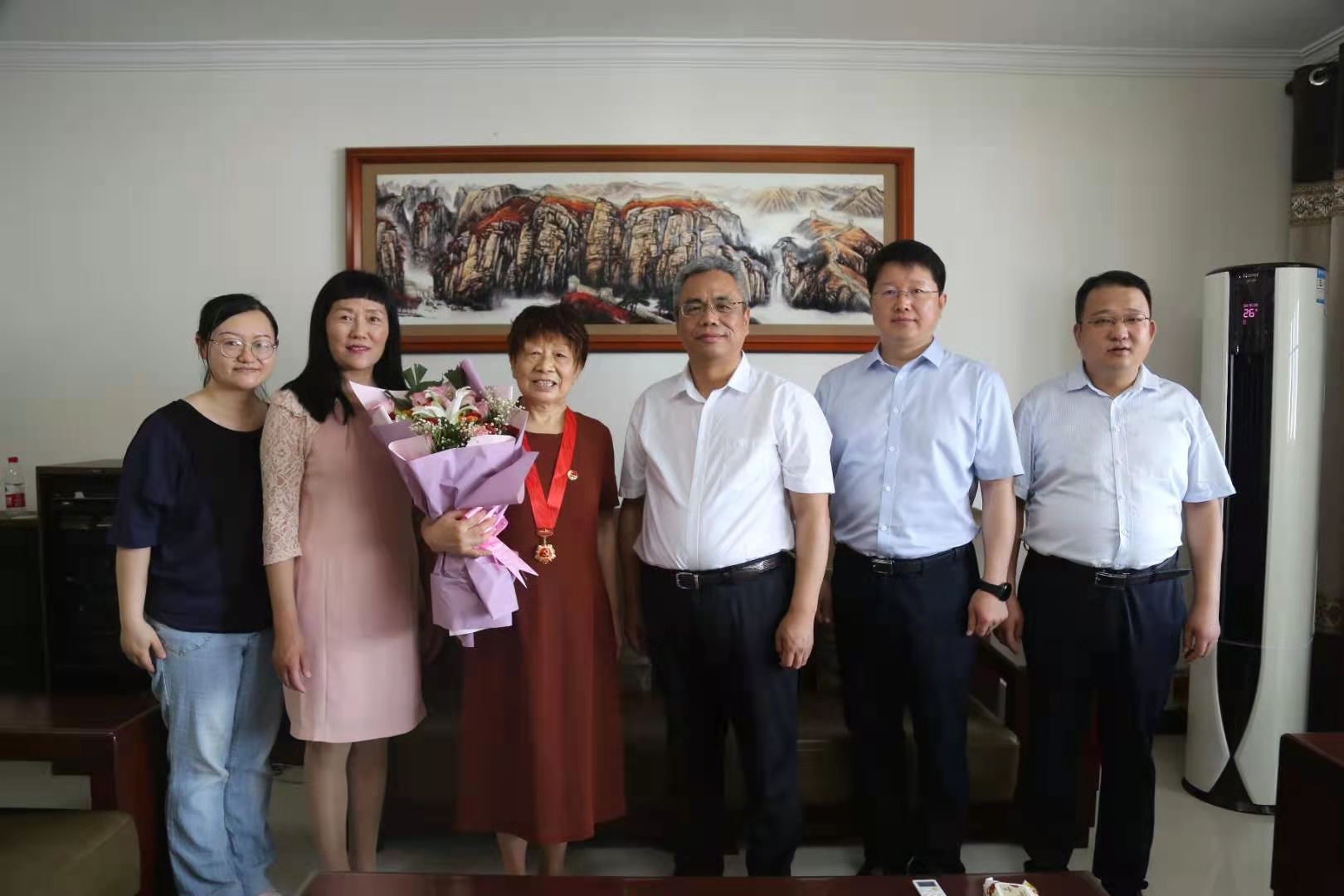 2021年6月28日上午,在党的百年华诞前夕,必赢242net官网党委书记卢克平在公司党委办公室、离退休工作处等部门负责同志的陪同下,来到公司退休党员教师朱秀云的家中,代表公司党委向朱秀云同志颁发佩戴了“光荣在党50年” 纪念章。