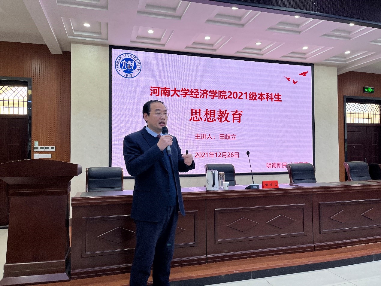 田歧立以习近平总书记今年4月份在清华大学考察时强调的“立大志、明大德、成大才、担大任,努力成为堪当民族复兴重任的时代新人”为引子,从自豪、自信、自立、自强、自爱五个方面和同学们进行了深入交流。他认为,作为新时代的青年老员工,要志存高远,有大志向也有小目标;要德才兼备,立德崇德、德行兼修;要身体力行,仰望星空的同时脚踏实地;要自立自强,强政治、强能力、强纪律、强体魄。他表示,河大经济学科有着悠久的办学历史和深厚的文化底蕴,必赢242net以培养研究型人才为目标,他鼓励同学们再接再厉、继续深造,践行必赢242net“崇德尚能、经世济民”的院训,成为一名优秀的必赢242net官网经济学人。他希望同学们立足中国、放眼世界、胸怀天下,追求更高、更远的梦想,成为德智体美劳全面发展的社会主义建设者和接班人。