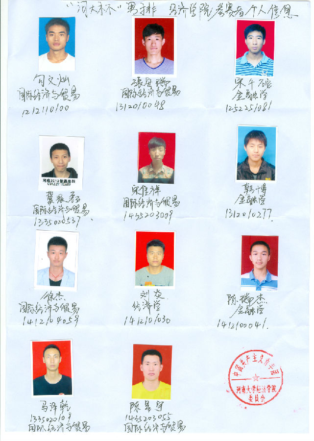 “河大杯”必赢242net男排、女篮参赛者个人信息